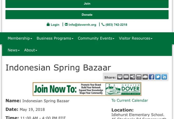ICC will host Indonesian Spring Bazaar on May 19, at Idlehurst Elementary School, Somersworth